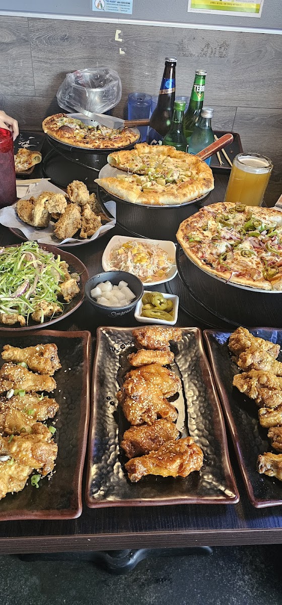 The menu highlights give a nod to Korean flavors infused into classic crowd-pleasers. The famous Korean Fried Chicken wings are a local favorite for their crispy exterior and juicy interior, with sauces that balance spice and sweetness without overwhelming. On the pizza side, inventive choices like the Sweet Potato Gold Pizza and Kalbi Pizza with a unique “royal crust” showcase the kitchen’s willingness to blend traditional Korean ingredients with the popular pizza format.